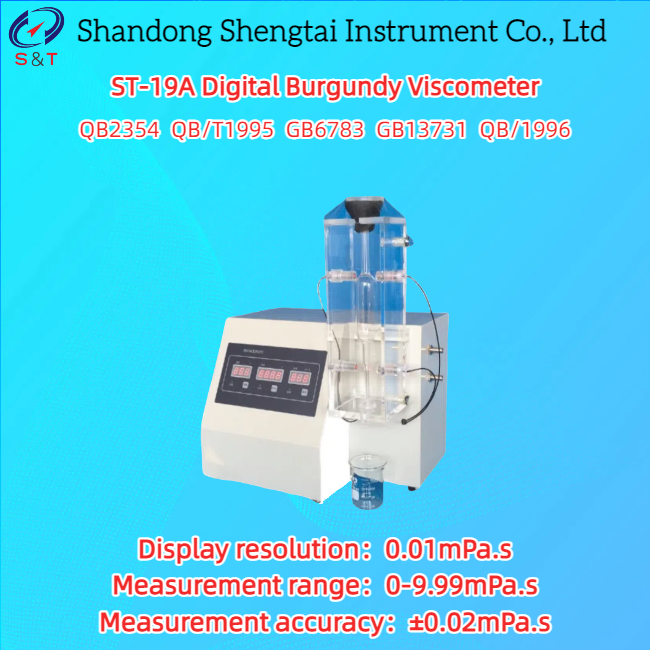 O viscosímetro digital Borgonha ST-19A é um instrumento especializado usado para medir a viscosidade Borgonha da gelatina. Ele é projetado e fabricado de acordo com o padrão QB2354 para gelatina medicinal e também está em conformidade com QB/T1995, GB6783, GB13731, QB/1996. A medição da viscosidade Borgonha da gelatina é um indicador importante que reflete o nível da tecnologia de produção de gelatina e controla a qualidade da produção de gelatina. Também é aplicável ao teste de desempenho de viscosidade de todas as gelatinas, como gelatina comestível, gelatina medicinal, gelatina industrial, cola de osso, etc.; Teste de viscosidade de líquidos de gelatina, como ágar e pó de proteína.