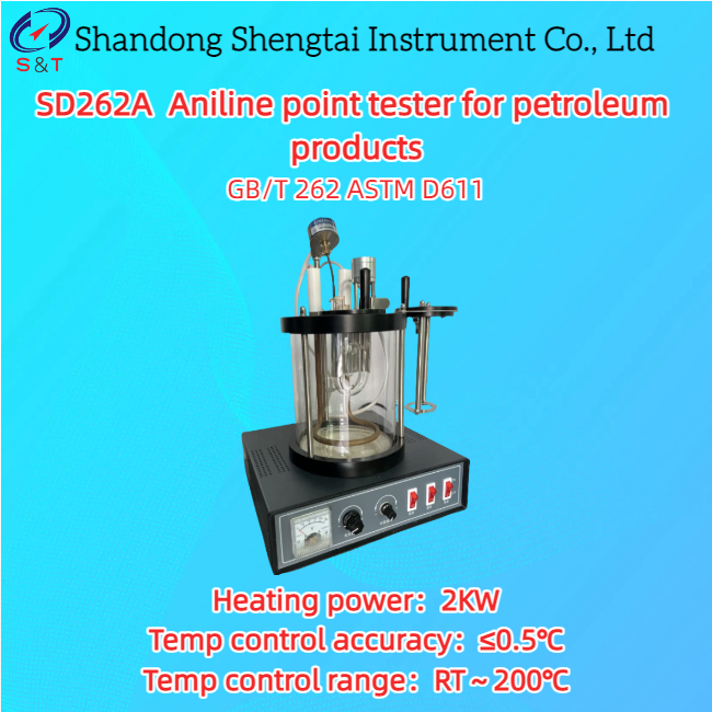 SD262A Aniline point tester for petroleum products is designed and manufactured according to the requirements stipulated in the national standard GB/T262 Aniline point tester for petroleum products. It is suitable for the determination of aniline point for light colored petroleum products and dark colored petroleum products.