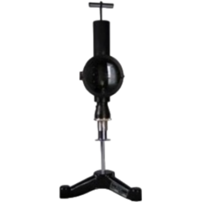 O óleo da amostra é queimado em uma lâmpada padrão, e a mudança da altura da chama é refletida na escala milimétrica de fundo.
