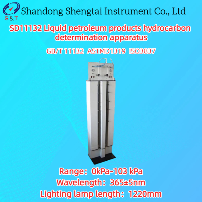 O medidor de hidrocarbonetos para produtos petrolíferos líquidos SD11132 está em conformidade com a norma da República Popular da China GB/T 11132-2002 "Método de determinação de hidrocarbonetos em produtos petrolíferos líquidos (método de adsorção com indicador fluorescente)" os requisitos estipulados no projeto e fabricação, aplicam-se para abordar, conforme estipulado na norma GB/T 11132, os principais hidrocarbonetos em produtos petrolíferos líquidos com indicador fluorescente exibido na coluna de adsorção de gel de sílica, calcular a porcentagem em volume, como a qualidade do óleo combustível, como combustível de motor, indicadores de medição de combustível de aviação.