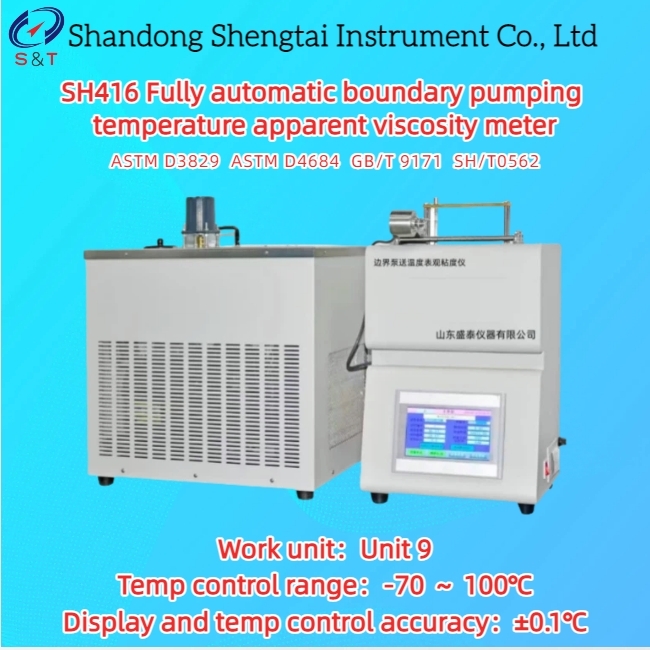 The SH416 fully automatic boundary pumping apparent viscosity meter is designed and manufactured in accordance with the requirements of the Chinese national standard GB/T 9171-1988 Engine Oil Boundary Pumping Temperature Determination Method, bem como SH/T0562, e também cumpre a norma da indústria petroquímica ASTM D3829 D4684; Um instrumento utilizado para determinar a temperatura de bombeamento limite, a tensão de rendimento (a baixa temperatura),e viscosidade aparente do óleo do motor de veículos a motor, com um amplo intervalo de controlo de temperatura de -5 °C a -40 °C. Todo o processo experimental é controlado automaticamente por computadores.